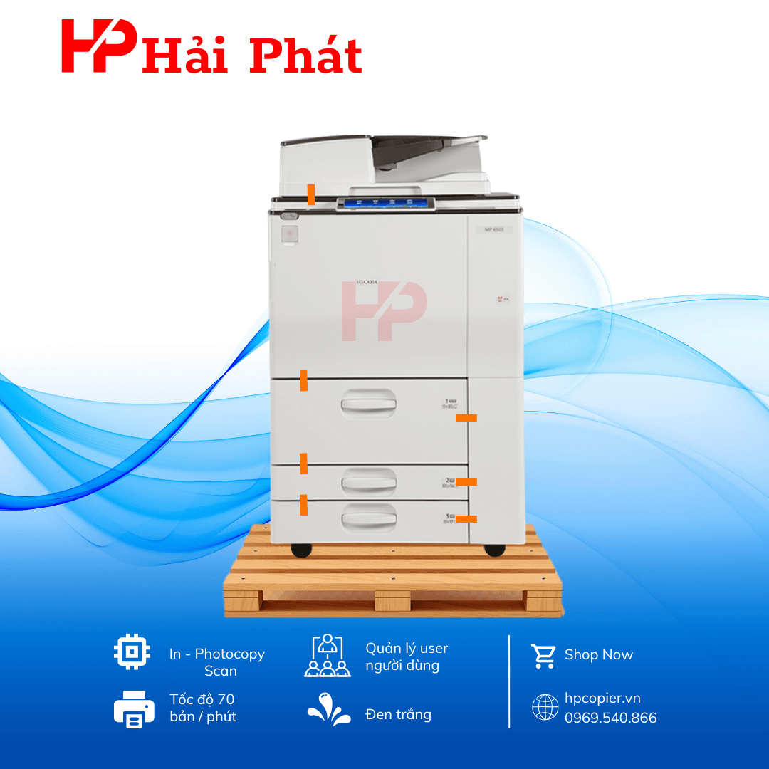 Máy Photocopy Ricoh MP 7503 máy photocopy chuyên nghiệp hội đủ mọi chức năng bao gồm photo, in mạng và scan. Người sử dụng không cần tốn thêm chi phí để trang bị bất kỳ thiết bị văn phòng nào nữa.